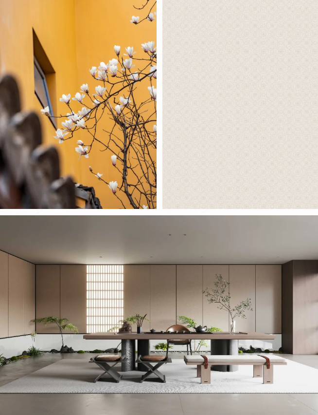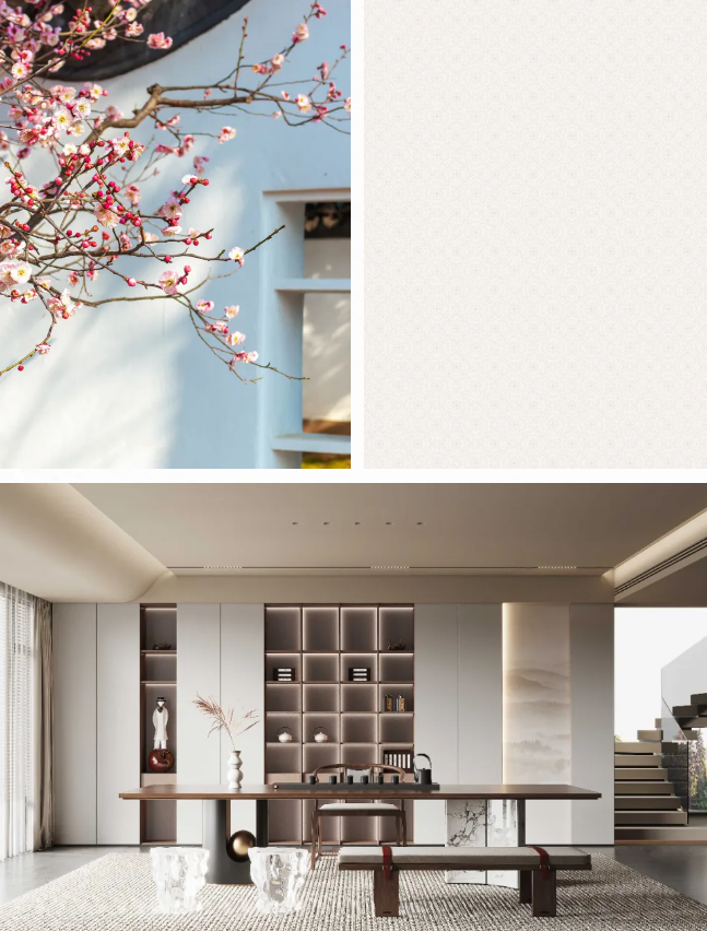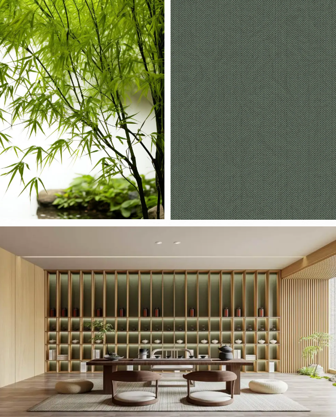 △主要运用了园中的假山和绿竹进行的延伸,细节处再结合苏绣的纹理最终呈现的效果,象征着生长与新生,代表自然、宁静和舒适。