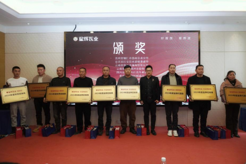 然后,大会特设荣耀颁奖环节,对年度杰出经销商代表现场进行隆重表彰。紧接着,现场与会的优秀经销商代表严若刚、袁宗华先后上台,在大会现场分享了与星辉瓦业合作的历程、心得。他们纷纷表示,与星辉瓦业合作是因为这个公司是切实在解决经销商痛点,带领大家一起转型、一起挣钱,并表示希望在未来也以一直能紧跟星辉瓦业发展步伐,不断前进,共创辉煌!