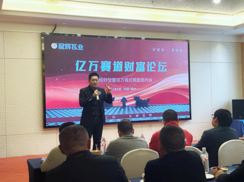 最后,为了进一步支持经销商和各位意向合作伙伴的发展,李总在会议现场宣布了一系列重磅招商政策并做了详细说明,用实际行动帮助合作伙伴在市场竞争中获得更多竞争优势。并期待大家能够抓住财富风口,与星辉瓦业一起,共创财富新篇章,携手共筑美好未来!
