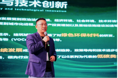 在产品同质化时代,如何打造出差异化尤为重要。亿固集团研发总监任海先生为大家带来《家装首选 品质荣耀》2025新产品矩阵全球发布会。任工以专业的视角和深入的剖析,为全场亿固家人详细介绍了以G系列为代表的低碳类生物基等前沿产品及7天焕新系统。