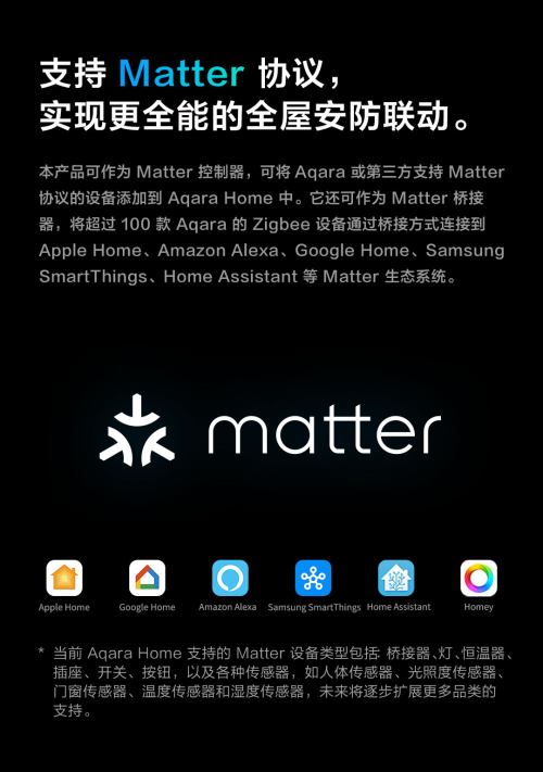 作为Aqara首款支持户外使用的网关设备,G5 Pro集成Zigbee 3.0与Thread双协议,并兼容Matter标准,可同时作为Matter Controller与Bridge使用。用户可通过Apple Home、Aqara Home等平台,将摄像机与智能门锁、灯光、传感器等设备联动,构建昼夜安全无忧的安防体系。