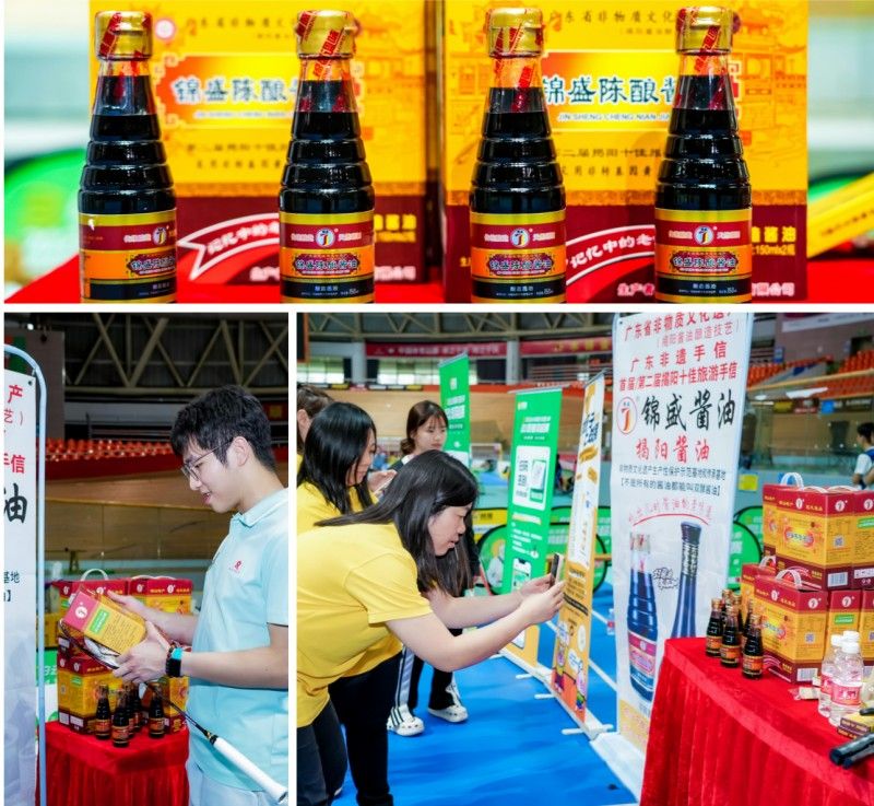 本次赛事赞助商之一的锦盛酱油,作为广东省非物质文化遗产之一,成为了深受市民喜爱的奖品。作为传统工艺的代表,锦盛酱油展示了其源自广东揭阳的历史与匠心。观众和选手们只需分享现场照片到小红书,便能获赠酱油一支。许多参与者表示:“打完羽毛球煮面需要酱油,简直是完美配搭!”