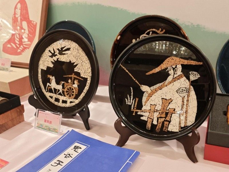 淇县蛋壳画展位前,数十幅蛋壳镶嵌作品在灯光下熠熠生辉。”蛋壳画需要将蛋壳打磨成 0.1 毫米的薄片,再根据图案进行拼贴。”工作人员现场展示的蛋壳画,用青、白、褐三色蛋壳巧妙拼出一幅幅精致的画作,让北京市民刘先生感叹:”这简直比珠宝还精致!”