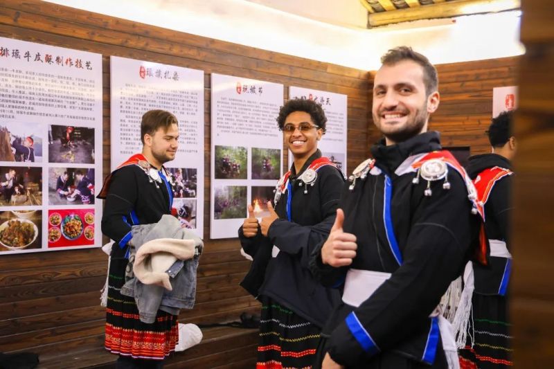 世界民族风情到处有,唯有连南不一样。活动期间,留学生们深入广东瑶族博物馆、非遗工坊、三排镇油岭村歌堂坪探秘非遗瑰宝,穿着瑶族盛装沉浸式体验瑶绣、瑶鼓、瑶银、瑶茶等瑶族非遗传统技艺,并参与民族篝火晚会,亲身感受连南深厚的民族文化底蕴。在万山朝王国家石漠公园了解连南生态保护与可持续发展成果,在连南稻鱼茶三产融合中心了解连南产业发展,体验了千年瑶茶文化,为连南“大叶茶”宣传推介。