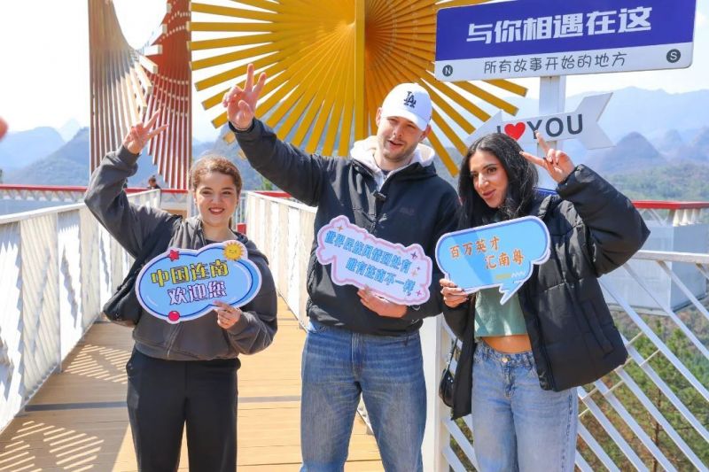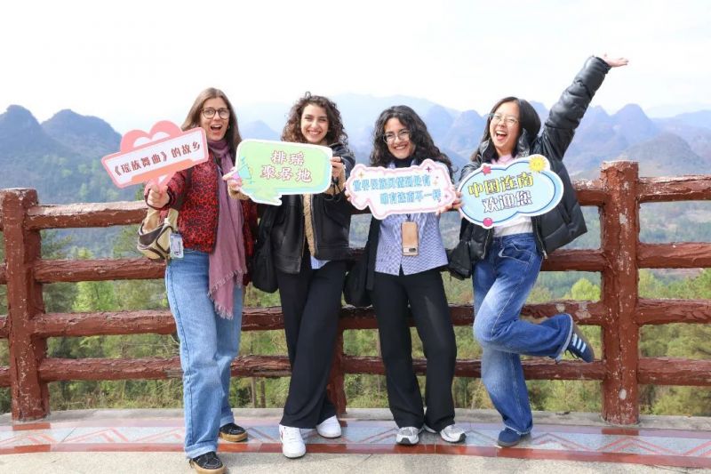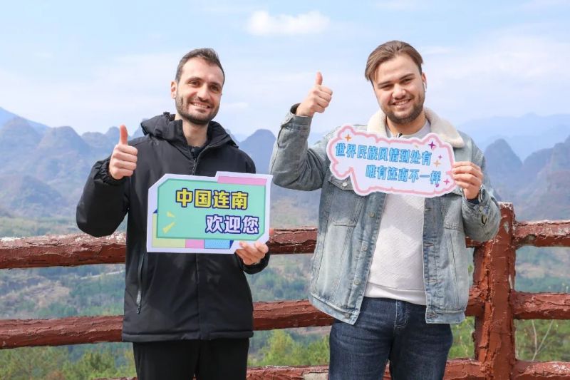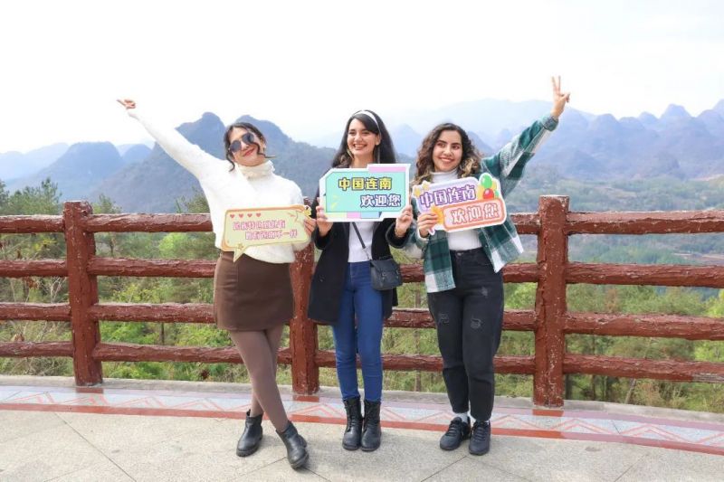 在万山朝王观景平台,留学生们录制了创意宣传短视频,用多国语言为连南热情“打call”,向世界展示连南的独特魅力,吸引更多人前来体验连南少数民族地区的文化与生态资源。