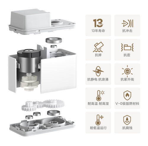 窗帘电机采用多重精密设计,运行噪音低于30分贝,即使夜间开合也不会干扰家人休息。小而强大即使是笨重的绒布窗帘也能丝滑平稳开合。此外,整机通过安全测试,可靠性测试多达23项,电机寿命长13年。