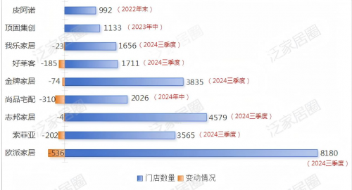 但2024年定制家居市场已然高速增长不再、存量市场见顶。门店数据也显示,再2024年除个别品牌没有公布数据以外,定制头部品牌的门店数量增速均显著下降。