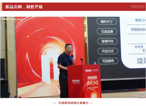 家有千人千面,美好生活不同模样。大会上,市场部培训组长谢燕兴向与会者展示了新品的独特魅力和技术优势。这些新品不仅在设计上将产品功能和不同风格的美学融为一体,更在材质、工艺、性能、色彩上实现了全面升级,彰显了贝洛特系统门窗在技术创新和产品研发方面的卓越实力,满足消费者对时尚感、多元化和舒适体验的家居需求。