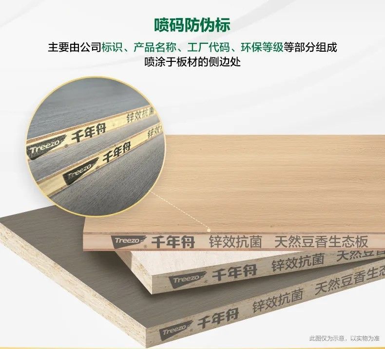 主要由公司标识、产品名称、工厂代码、环保等级等部分组成,喷涂于板材的侧边处。