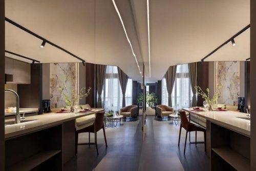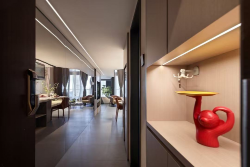 方隅之间,自成天地。在本案的营造中,设计师将业主的居住理想,物质和精神富足积淀而成的品味修养,以及对家的情感和对租户的善意与祝福幻化成无数闪光的生活片段,在这森罗万象里,穿透夜的浓雾,拥抱每个风尘仆仆的归家人。