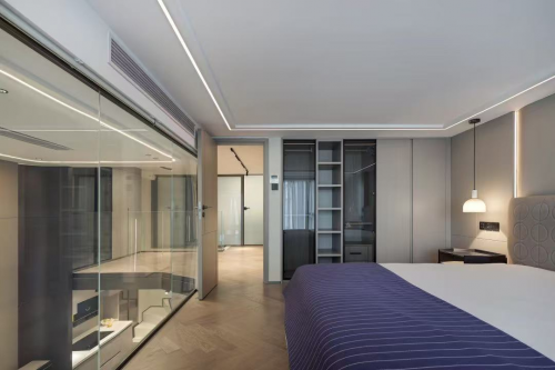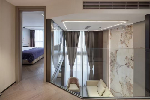 巧妙的玻璃房设计,洞察居者心向往之的浪漫主义,改善小户型复式空间带来的沉闷、昏暗和视线拥堵,一切美好生活,睁眼即见。