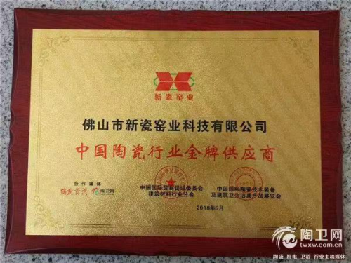 熊晓峰:近三年以来,新瓷窑业先后斩获“中国陶瓷行业金牌供应商”、中国陶瓷工业协会“节能窑炉标杆企业”、“陶瓷装备技术革新金奖”等权威荣誉。