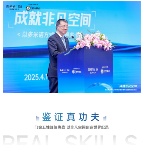 中国建筑材料流通协会会长秦占学也在致辞中强调,“门窗作为建筑物外立面装饰材料之一,其性能质量对居住安全和生活品质产生重要影响。新豪轩门窗大力发展新质生产力,加速数字化转型,以智能、绿色为制造之基,向吉尼斯世界纪录称号发起挑战,是行业高质量发展的生动写照,更是中国制造业从“规模”向“质量”跃迁的缩影,将共同推动中国门窗向全球价值链高端迈进!”