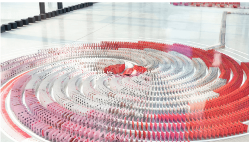 挑战日当天上午,模拟12级暴风雨的鼓风机再次打开,在吉尼斯世界纪录认证官杨绍鹏的见证下,新豪轩集团总裁冯佐星和王磊老师以灿烂绽放的烟花作为启动密码,开启了激动人心的吉尼斯世界纪录挑战。非凡空间内由超五万张卡牌组成的巨型花式多米诺阵列依次推倒,新豪轩门窗品牌标识、IP小轩、国家级绿色工厂、10大国际顶尖设计奖项及系统窗、系统门、入户门、生态门、淋浴门、阳光房、幕墙七大门窗品类等卡牌一环扣一环,在风雨中再次向世界展示了新豪轩门窗硬核科技与精密工艺实力,表明中国门窗达到世界顶尖标准,同时展现出中国制造参与国际精工产品竞争、服务国际市场的技术实力和产品自信,为中国门窗的全球化进程迈出了重要一步。