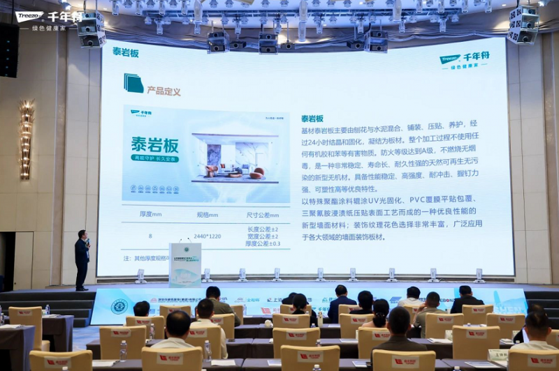 活动现场,千年舟还设置了专门的品牌展示区,吸引了众多参会者驻足参观。展示区内不仅陈设了千年舟的明星产品,如泰岩板、石墨烯黑金板、新型难燃OSB板等,还通过多媒体互动形式,全方位展现了千年舟的品牌实力、创新技术以及丰富的工程案例。