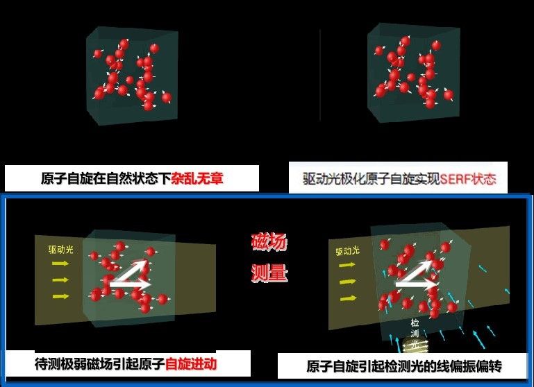 SERF原子磁强计是国器传感的核心技术产品,其工作原理是利用碱金属原子(Rb)外层电子自旋性质,以泵浦激光,使碱金属原子产生自旋极化,在外界弱磁场的作用下,碱金属原子发生拉莫尔进动,改变对检测激光的吸收,从而实现高灵敏度的磁场测量。