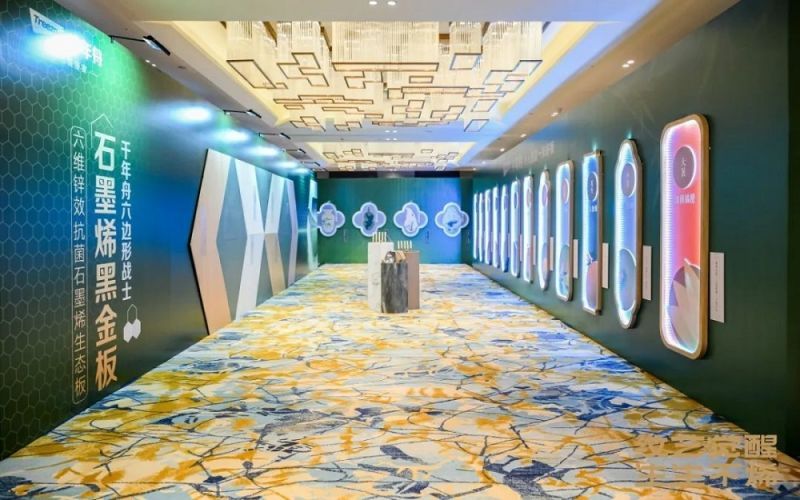 在本次玉林新品发布会上,千年舟带来了一系列令人瞩目的新品。其中,千年舟六边形战士-石墨烯黑金板(六维锌效抗菌石墨烯生态板)凭借卓越的石墨烯、抗菌、抗病毒、防霉、净醛和除TVOC六大核心功能,备受关注。