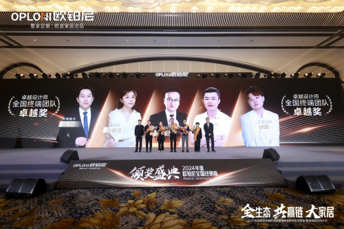 欧铂尼营销支持部经理黄云峰、欧铂尼产品规划部经理徐宏介为全国卓越设计师颁奖