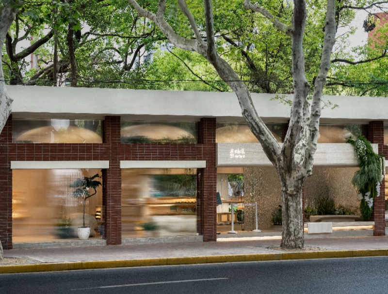 chillmore宝庆路店落位于上海衡复风貌区宝庆路21号,这片全长仅373米的街区被誉为“海派文化露天博物馆”,沿街Art Deco建筑群与梧桐街道交织出独特的历史肌理。chillmore选择独栋建筑进行改造,保留红砖外墙、水磨石地面与钢窗结构,同时以现代设计语言重构空间体验。