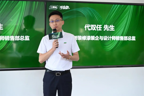 活动伊始,三棵树装修漆装企与设计师销售部总监代双任先生发表了精彩的致辞分享。他对设计师朋友的到来表示了最诚挚的欢迎,并回顾了三棵树在推动设计创新方面的不懈努力。2025年,三棵树希望通过“城就伍拾·健康+设计星引力”项目,与全国各地的杰出设计师展开深度对话,让设计师们能够从品牌、产品等多个角度更加深入地认识三棵树。作为国内 " 健康漆 " 领域的领军品牌,三棵树是设计师们坚实的后盾,凭借出色的落地服务,为设计师们的创意实现提供全方位保障。