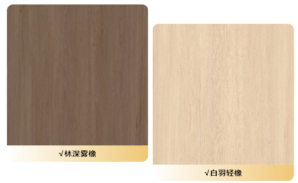 “溪山沉榆(同步石墨烯)” 和 “岩影雾橡(同步石墨烯)” 等深色系花色,不仅具有耐脏、耐磨的特性,还能与厨房的各种电器和厨具完美搭配,营造出时尚、大气的厨房风格。