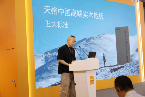 展会上,天格通过沉浸式展位设计与观众深度互动,将其对“高端”的理解转化为可感知的体验。整个展位以中国“天、木、人”三方平衡为理念,使用大量的天然木材并融入中国传统榫卯结构。观众不仅能触摸到实木的天然质感,还能直观了解到通过以榫卯结构为灵感的锁扣连接技术的精妙。2024年,天格品牌定位全新升级,以“表里如一的高端品质、面面俱到的高端服务、总部负责的高端安装、环环相扣的高端工艺和五大承诺的高端保障”为核心,系统性重构高端地板的价值链。在展会第二日,由实木地板联盟举办的《世界的就是中国的 中国地板多元文化创新发布》活动上,天格营销副总经理张山山先生再次深度解读了中国高端实木地板五大标准,让用户从选购到使用全流程感受到中国地板品牌打造的真正高端内涵,赢得了业内人士的高度认可。