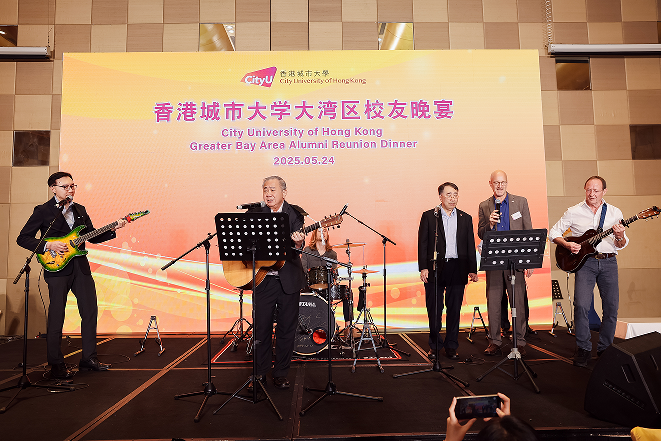 梅校长表示,当前中国已成为全球最具活力、最稳定且最富创新力的国家之一。港城大的策略发展亦顺应这一趋势,致力于打造“国际化的年轻人才聚集地”,积极推动国际化及创新创业。港城大一直以来支持校友网络建设,号召校友凝聚力量,共建精神家园。现场气氛热烈,分别有计算学院和工学院的校友分享己见,更有工学院师生代表献唱,情感真挚。为感谢校友的热心支持,梅校长更与几位大学代表组成乐队表演经典金曲 “Stand by Me” 及 “Hey Jude”,一度将气氛推至高峰。