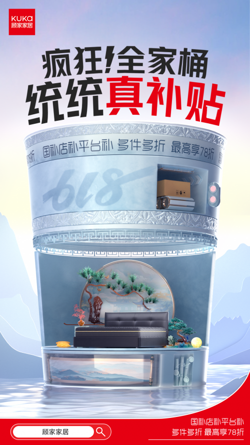 一方面,顾家家居在京东、天猫、抖音等核心电商平台开设618专属会场,核心策略围绕国补叠加,将国家补贴、品牌让利与平台优惠进行深度整合。通过突出多件多折、爆款直降等核心利益点,显著降低消费者换新门槛,让消费者真切感受到“换得起”、“换得实惠”。