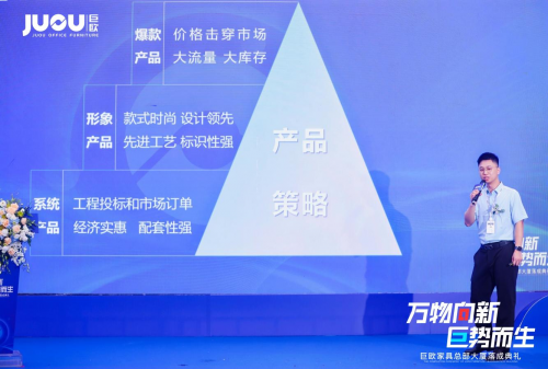 巨欧家具集团副总经理王俊以《让办公家具没有难签的单》为主题,介绍了巨欧家具集团的品牌定位、市场定位、客户定位和价格定位,对平台结构、产品策略、合作模式、服务保障等进行了解读和诠释。