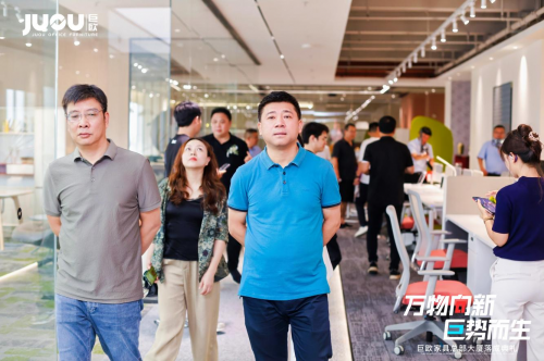 典礼结束后,与会嘉宾在董事长王永辉、副总经理王俊及所有巨欧家具工作人员的带领下,前往巨欧家具集团总部大厦展厅,从1楼到9楼,分别对办公家具、医养家具、学校家具、公寓家具等,进行学习、参观和交流。