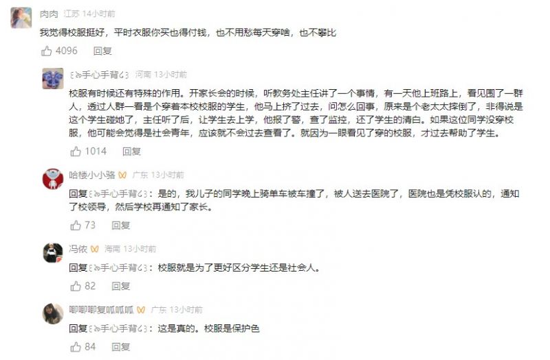 “校服是保护色,更好区分学生还是社会人。”一条条真实评论,诉说着校服不可替代的价值。
