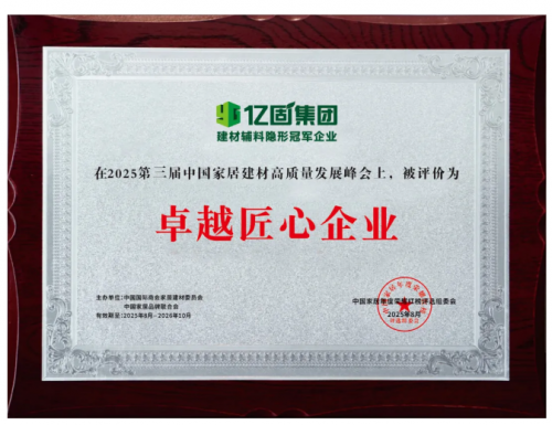 2025年7月24日,亿固荣获"卓越匠心企业"称号,成为行业首个获此殊荣的材料供应商。亿固每年投入500万元,用于推动“大国金牌工匠”成长计划的技能培训和技术研发,通过"亿固铺贴商学院"培养复合型人才,推动行业从"劳动力密集型"向"技术密集型"转型。