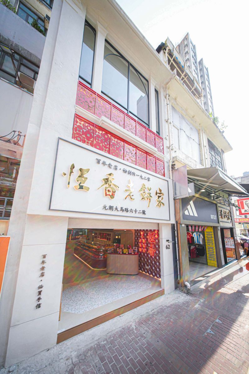 目标为打造成元朗地标之一的恒香旗舰店,地下零售馆采用经典红色搭配自然柔和背景设计展现老字号的新风貌,而且空间设计融合怀旧元素与现代感,打造舒适购物体验。旗舰店设有烘焙饼房,新鲜出炉老婆饼、皮蛋酥、蛋黄莲蓉酥等招牌酥饼; 另新增推蛋挞及冻挞等港式经典美味,务求能带给顾客更多元化的产品选择,尽情感受百年匠心与地道风味。