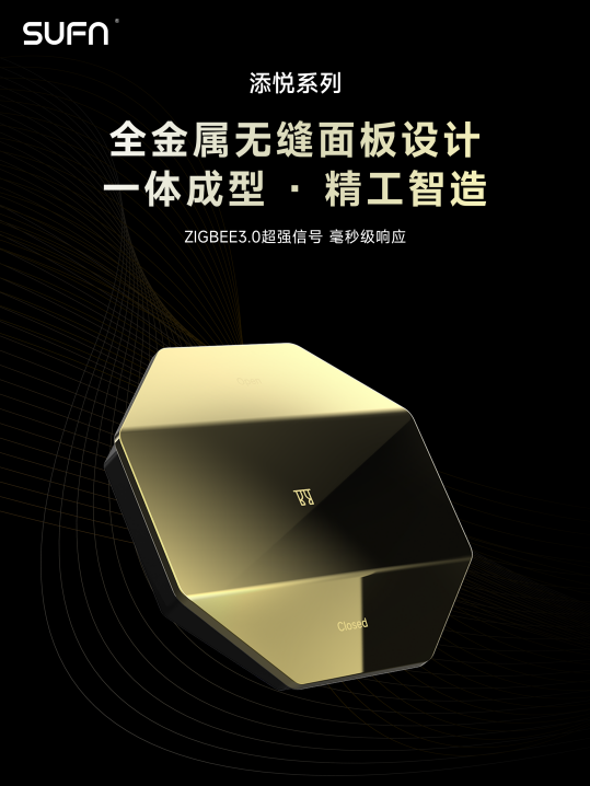 全金属无缝面板设计工艺——产品采用0度切割工艺,精工锻造行业首创全金属面盖,呈现卓越质感。更令人惊叹的是,结合ZigBee 3.0超强信号技术,即便采用全金属面盖设计,产品依然能够实现毫秒级响应,传输距离达到空旷环境140米、隔挡物环境50米,远超行业标准,完美解决了金属外壳对无线信号屏蔽的技术难题。