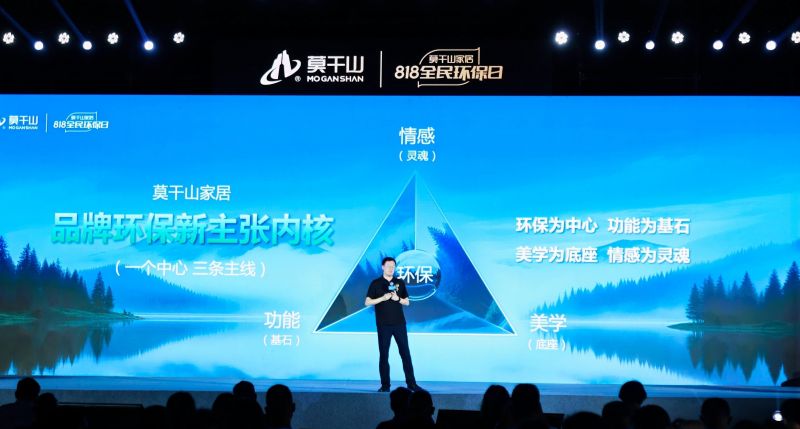 云峰莫干山品牌数字化营销中心总监王泽来则系统发布了品牌的环保主张升级。莫干山家居深厚的环保基因是其不变的底色,而环保新主张的核心在于实现从“物理环保”向“身心健康环保”的跨越。