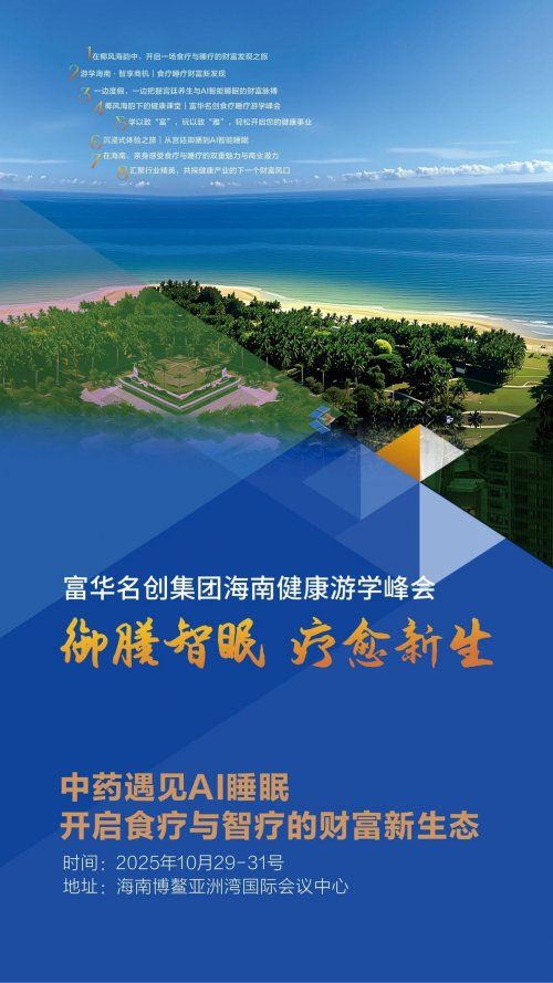 想在海南度假时,既找到创业商机,又给心灵放个假?2025年10月29-31日,富华名创集团食疗睡疗游学峰会在博鳌等你,新增心灵疗愈板块,带你解锁“边疗愈、边赚钱”的新玩法!