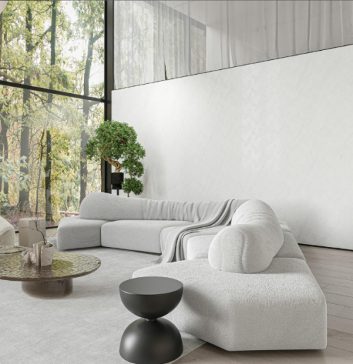 L&D唯美陶瓷注重细节刻画,表面肌理带有轻微的浮雕感,触感丰富。在灯光映照下,能形成微妙的光影变化,为客厅增添几分灵动与趣味,适合追求精致生活质感的家庭。
