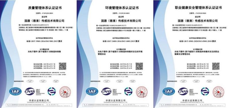 国器传感成功斩获“浙江省科技型中小企业”和“浙江省创新型中小企业”双项认证,与此前成功通过ISO 9001质量管理体系、ISO 14001环境管理体系及ISO 45001职业健康安全管理体系三大国际权威认证,形成有机互补,共同构建起企业高质量发展的完整认证体系。在技术创新与管理规范的双轮驱动下,国器既保持了技术领先优势,又具备了将创新成果高质量转化能力,为企业后续进一步的提升奠定了坚实基础,展现出科技创新型企业特有的发展路径和竞争优势。