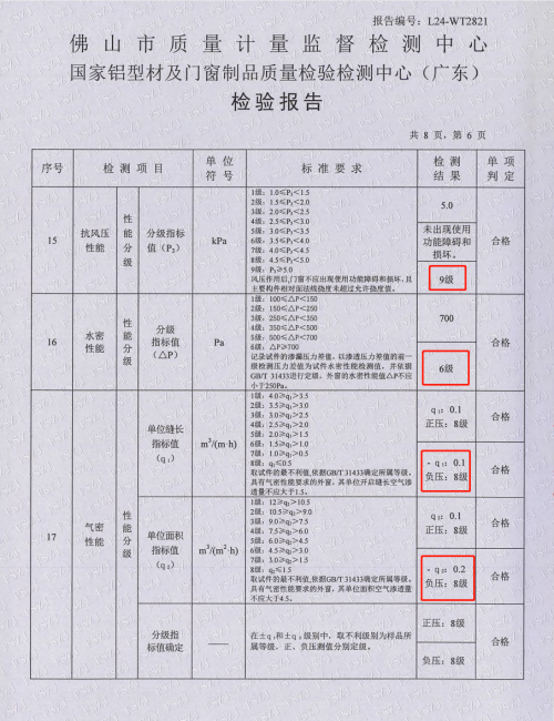 同时,圣堡罗其产品多项关键指标达到行业高级标准,如——气密性8级,水密性能6级,抗风压9级,均是性能分级里的行业最高级别(满级)。