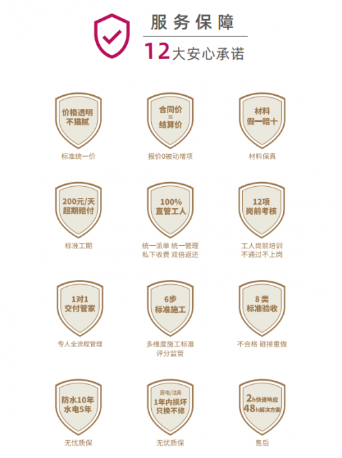 定价上实行闭口合同模式,拆旧、材料、人工等所有费用分项列清,合同价即为最终结算价,承诺0增项,让消费者提前掌控预算。更关键的是售后保障:不仅材料假一赔十,还承诺防水工程10年质保、水电改造5年质保,2小时内响应售后咨询,48小时内出具解决方案。这种透明消费+硬核质保的模式,让小红书上不少业主直呼“踩过装修坑后,才知道这种靠谱有多难得”。