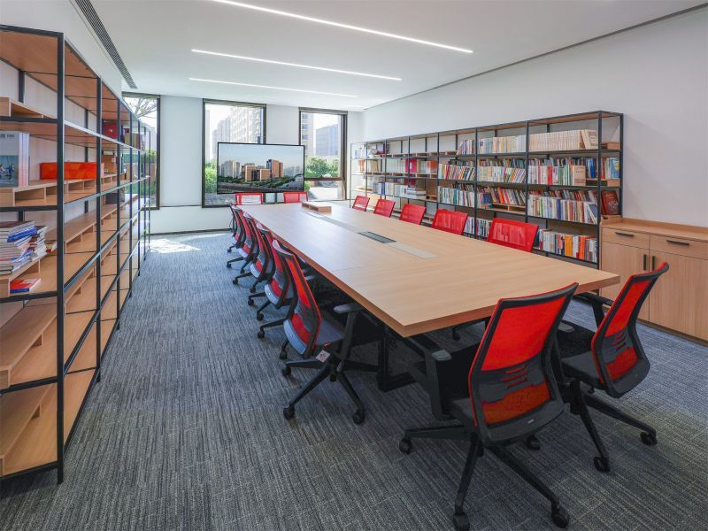 项目的一大亮点是将灵活可变的读书角落打造为 “直播间”。随着网络直播日益普及,出版社也开始积极转型,利用展示空间进行直播活动。震旦推荐Code 桌轻便灵活,可以组合成不同形状,适应不同场景需求,既可用于举办新书发布会,也可用于各类接待活动。
