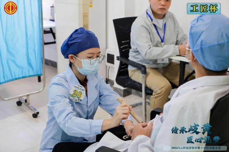 为深入贯彻落实习近平总书记关于中医药工作的重要指示精神,全面落实《中华人民共和国中医药法》《"健康中国2030"规划纲要》及省、市中医药发展部署,持续提升基层中医药服务能力,2025年11月26日,由白云区总工会、白云区卫生健康局指导,白云区民营医疗机构协会和区民营医疗机构工联会主办,白云区总工会来穗务工人员工作委员会、永平街道总工会、白云区民营医疗机构协会学术委员会、广州东仁医院、广东省丰源职业培训学校协办的"工匠杯"—2025年白云区民营医疗职工中医技能竞赛在广州东仁医院成功举办。本次竞赛吸引了全区逾百名民营医疗机构中医师、针灸师、康复治疗师、传统康复医学人员等同台竞技,以赛促学、以赛促练,全面展现了白云区基层中医药人才的精湛技艺与时代风采。