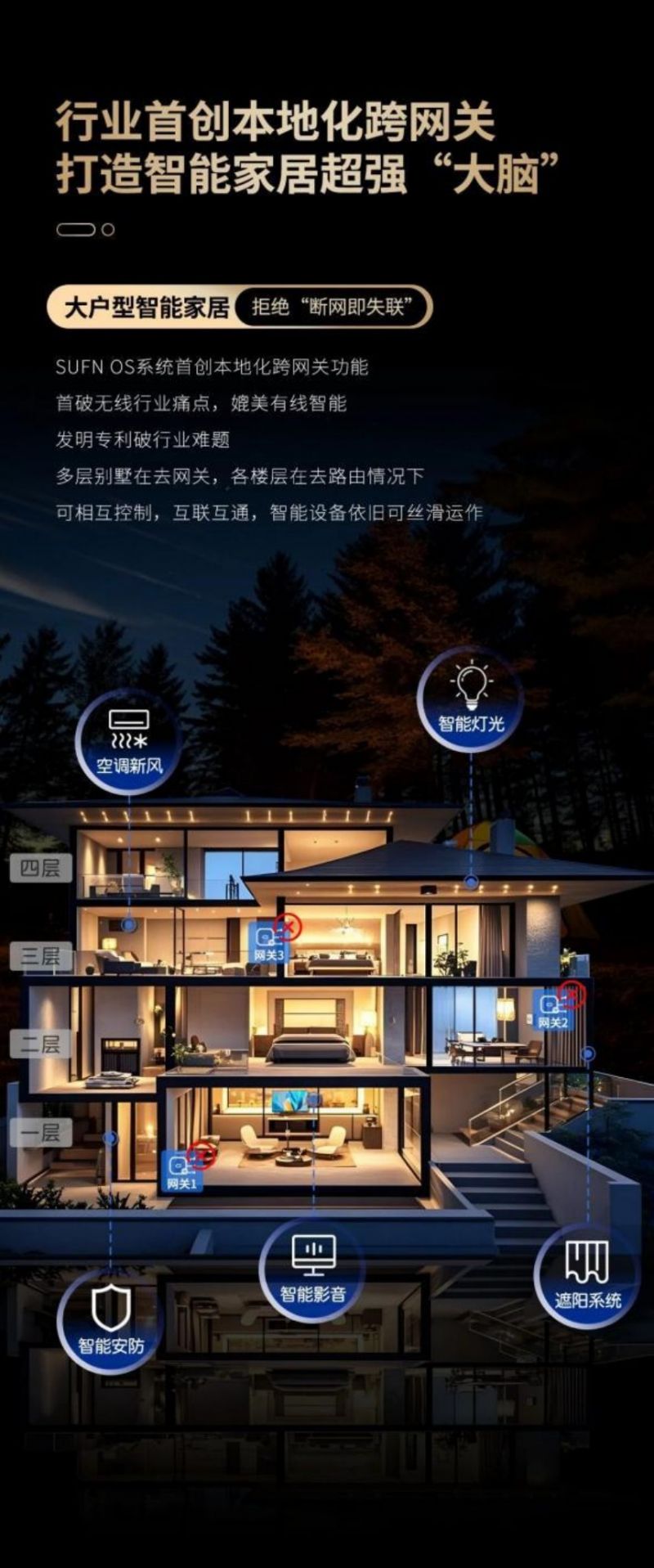 技术壁垒突破——首创本地化跨网关功能,解决全屋智能家居行业“断网即失联”的痛点,打造智能家居超强“大脑”;