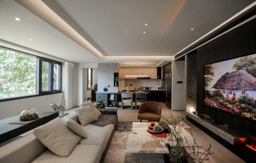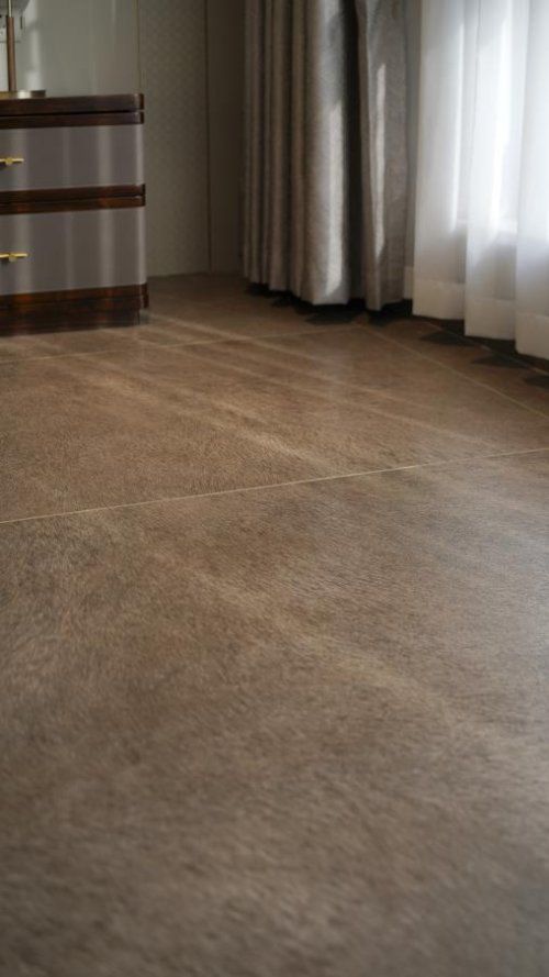 浙江金华丽景湾1000㎡大宅是现代美学与新中式庭院相结合的典范。项目以现代美学与实用主义为核心,巧妙融合传统东方韵味与摩登生活语言。客厅地面铺陈的MC98603银灰色马毛瓷砖,其中性色调与细腻质感,既奠定了现代空间的简洁基调,其自然肌理又隐隐呼应着传统东方美学中对自然材质的崇尚。在开阔的一体化布局中,马毛砖以其温润的触感与视觉层次,为极简的空间注入了人文温度。