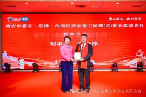 ▲泉州台商投资区党群工作部副部长、四级调研员张建发为副会长授牌