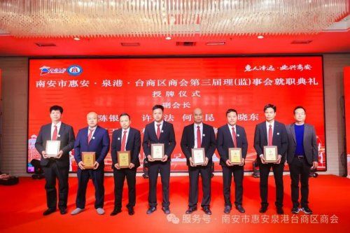 当天还举行了南安市惠安泉港台商区商会第三届第一次会员大会,会议审议通过了商会章程、会费标准和管理办法、选举办法等,选举了新一届理监事会成员,讨论并通过名誉等职务名单。
