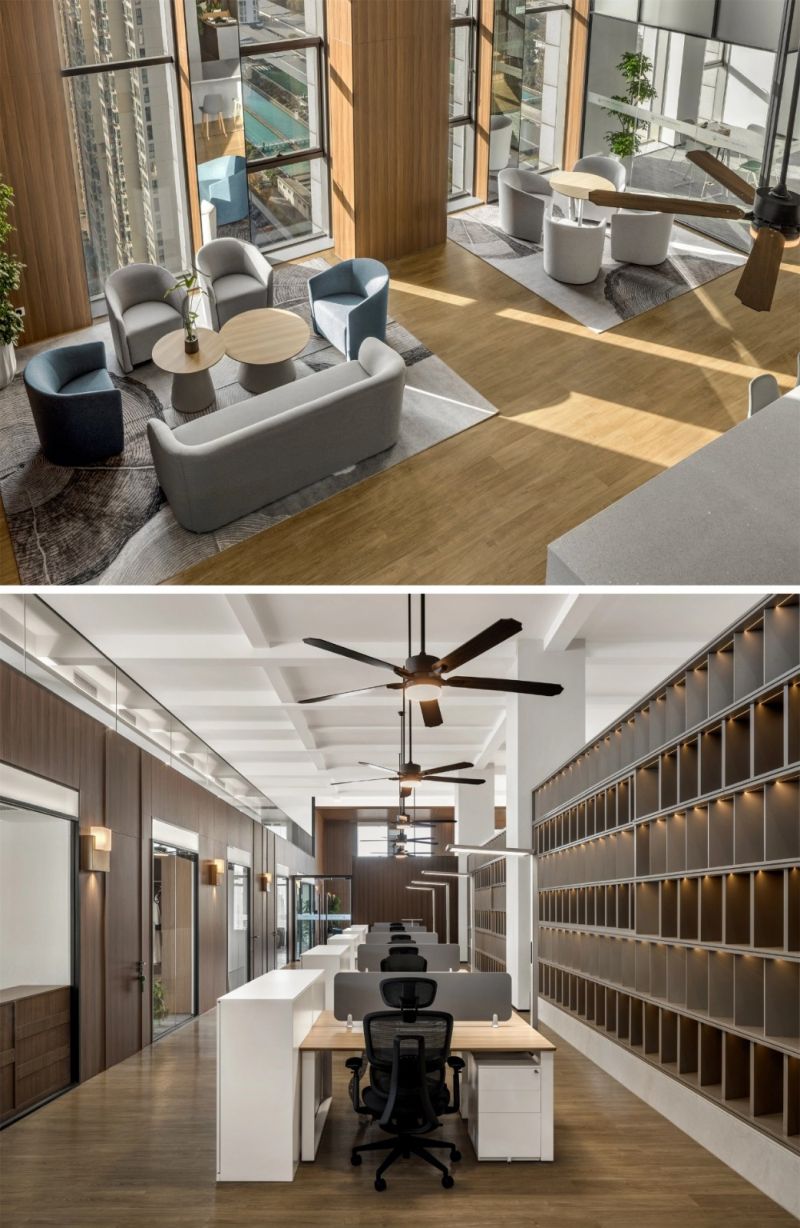 上图:轻松的商务洽谈空间 下图:开放式职员空间