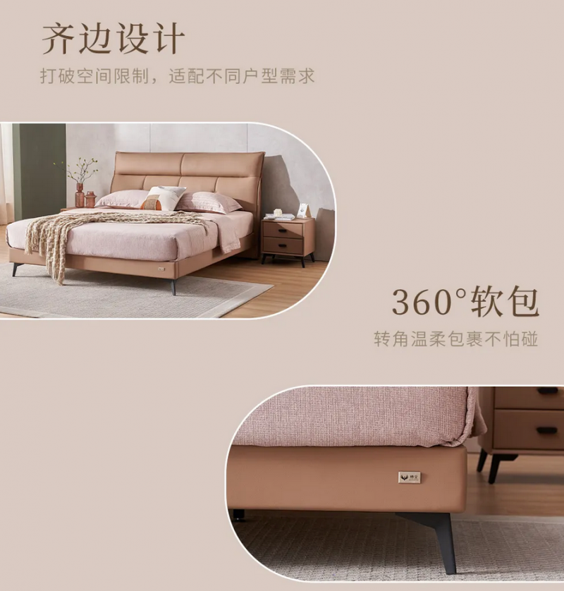 穗宝集团在蕾莱亚x梵洛贝两大产品系列中融入诸多暖心设计,让便利与守护渗透生活日常。床体采用齐边造型结合360°全周软包设计,突破了传统床具的空间束缚,无论置于大户型的开阔卧室,还是小户型的紧凑空间,都能实现精准适配,避免多余空间占用;同时,全周软包可细腻包覆床角边缘,有效规避磕碰风险,为家中老人、孩童筑牢安全防线,守护更显周全。不仅如此,产品还创新搭载12cm一体成型金属高脚结构,高度经过精准测算,恰好能容纳扫地机器人自由穿行,彻底告别床底清洁弯腰费力的困扰,轻松为日常家务减负。