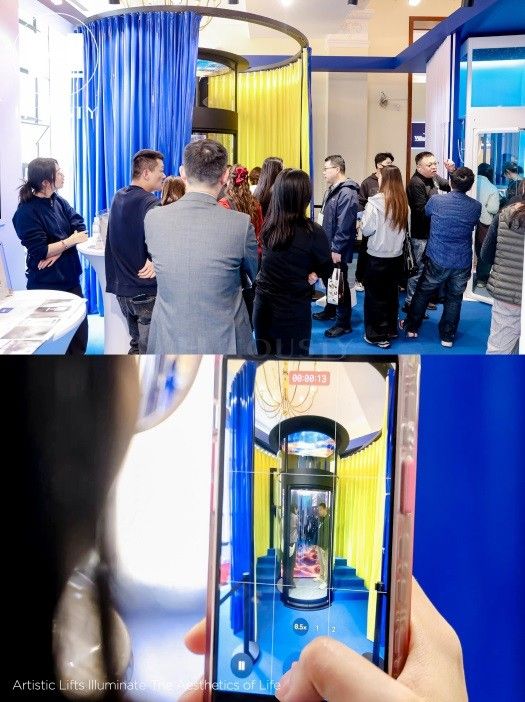每一组背景均与电梯产品深度融合,将垂直移动转化为沉浸式的感官体验,成为展区中吸引观众驻足拍摄的亮点之一。