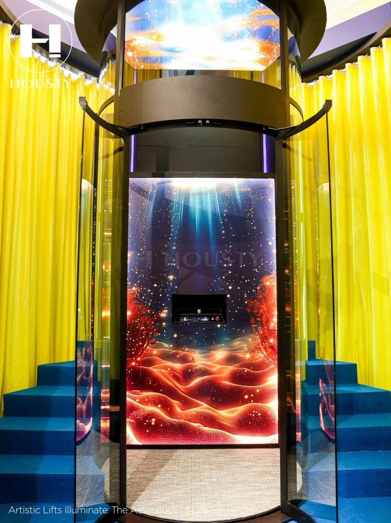 展区以独特的空间叙事与创新产品构建出沉浸式体验,流动的色彩、艺术化的视觉呈现与极具未来感的电梯产品,使其成为展馆内备受瞩目的焦点之一。不少观众表示,展出的电梯产品颠覆了其对别墅电梯的认知。
